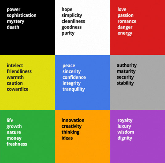 โดยสีที่นำมาใช้ในการออกแบบแต่ละสีก็สื่อความหมายและความรู้สึกต่อผู้บริโภคได้แตกต่างกันไปตัวอย่างเช่น